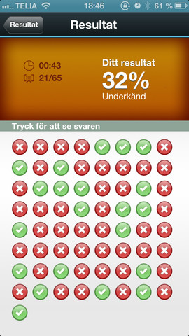 Snygg och stilren      Av Hasehasse Riktigt bra app! Kan sitta på bussen och tåget och träna på frågorna samtidigt! Rigtigt bra gjort!