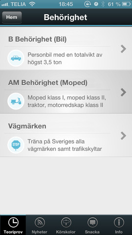 – Rekommenderas av AppNyheter.com "Det finns inte många Appar som erbjuder Teoriprov i iPhone, men den bästa av dem är Körkortsteori som är en riktigt bra app!"